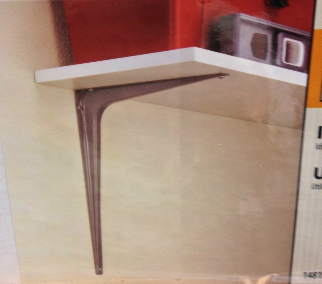 Ideally we would have preferred the white one but the only one on sale was the Maple finish (this was during Christmas time). We figured if we got the Maple we could paint it white if we couldn’t make it work. For support, we got regular shelf brackets like these;