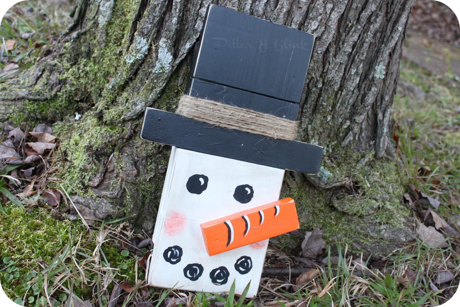 I painted the hat black, the nose orange, and the face white. Then I painted eyes, a mouth, rosy cheeks, and lines on the carrot nose.