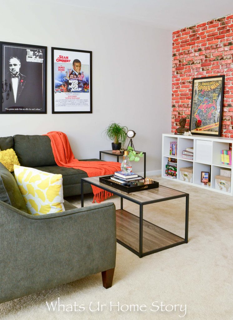 Finally the reveal of the mega project that I was working on is here! Our family room in the basement got a loft style makeover complete with a brick accent wall! Took almost a year in the making! Phew, worth the wait don’t you think?