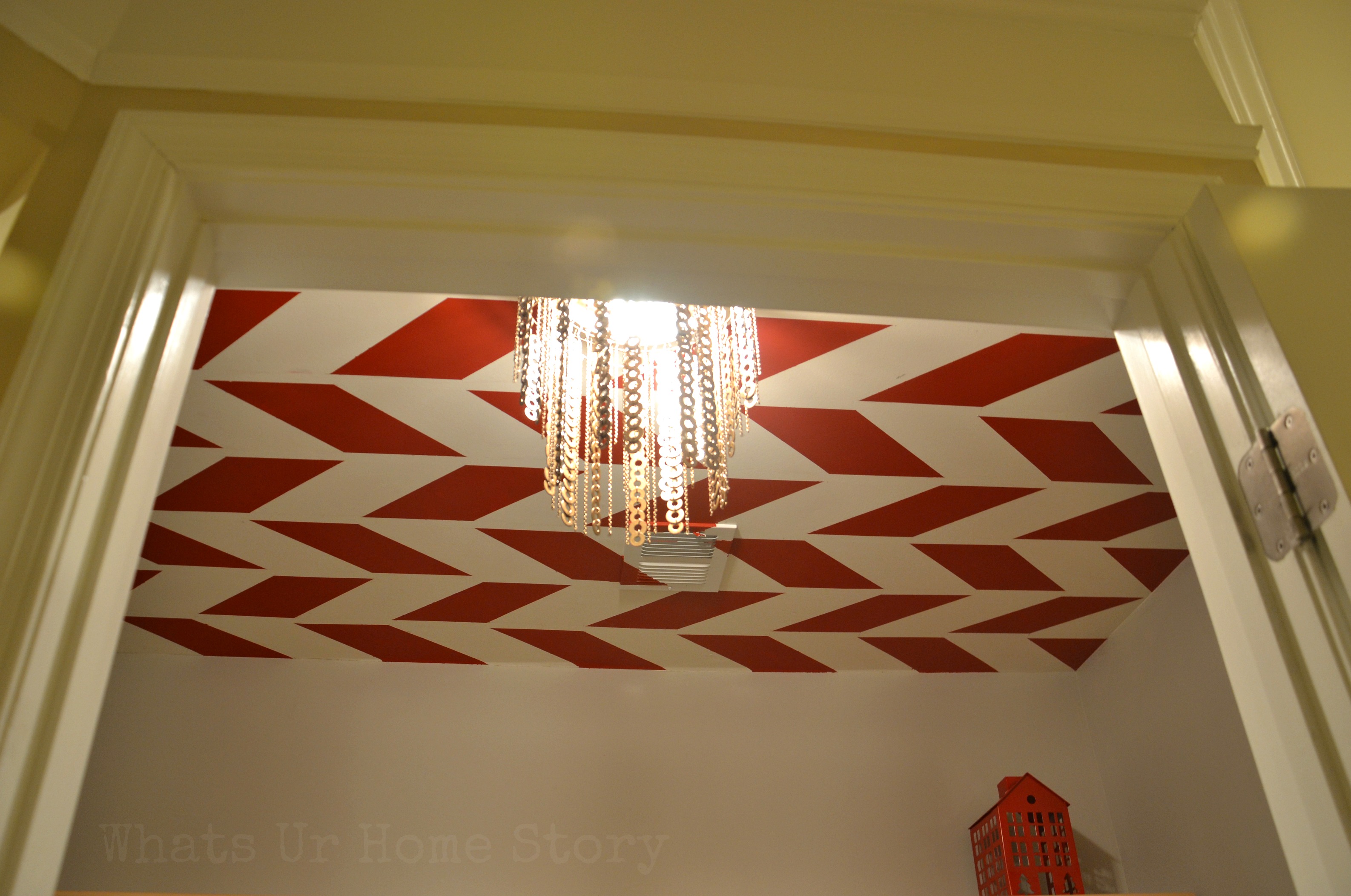 ceiling is great with the red . i am sure it was not an easy job . waiting for the tutorial