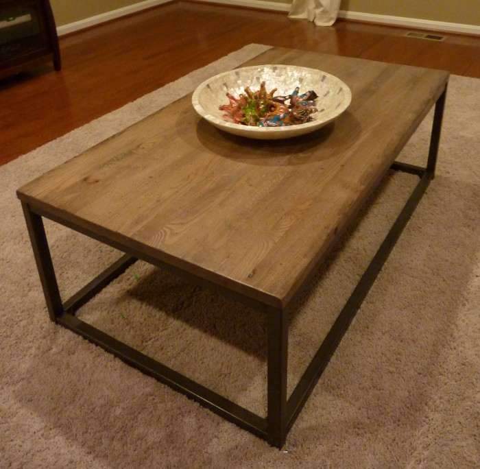 I have been eyeing these contemporary tables for a long time now but didn’t want to spend that much dough. Actually there was another problem, I liked the style of the first one (see the corners on the bottom) and the rustic finish of the second one.